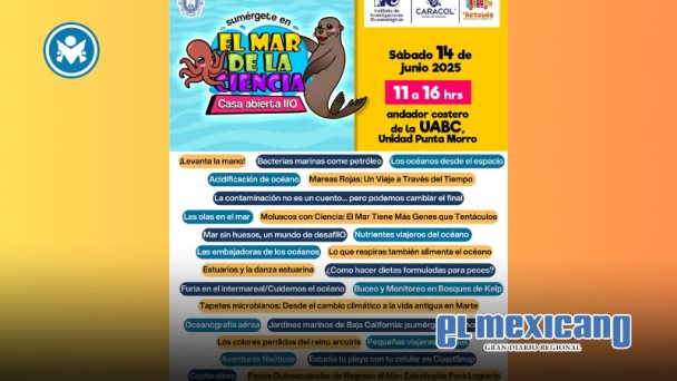 Este evento de carácter divulgativo, tiene como objetivo principal acercar el conocimiento científico y la investigación oceanográfica al público. Se llevará a cabo el sábado 14 de junio de 2025, en un horario de 11:00 a 16:00 horas, en el Andador universitario de la UABC, Unidad Punta Morro.