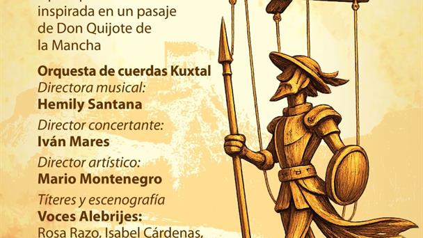 Estrenada en 1923, esta ópera de cámara conjuga música, literatura y juego escénico mediante el uso de títeres como eje narrativo, recreando el célebre pasaje en el que Don Quijote, al presentar una función de marionetas, confunde la ficción con la realidad e interviene para defender a los personajes.