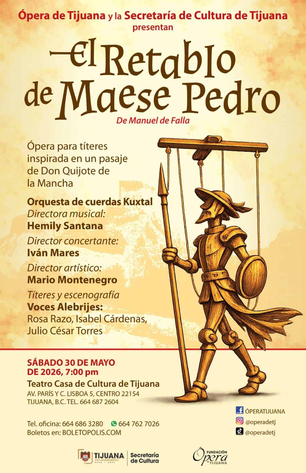 Ópera de Tijuana y Secretaría de Cultura presenta "El Retablo de Maese Pedro"