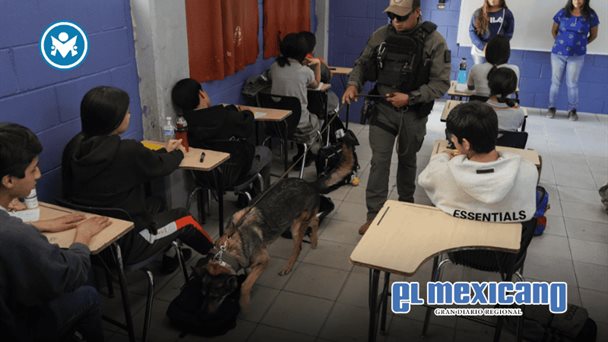 Además, con apoyo del agente canino policial "Vali", se realizó un recorrido entre los mesabancos para la detección preventiva de posibles sustancias ilícitas dentro del plantel.
