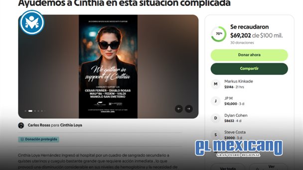 La paciente enfrentará además un periodo de recuperación superior a un mes, tiempo durante el cual no podrá trabajar. Por ello, familiares y amigos lanzaron la colecta "Ayudemos a Cinthia en esta situación complicada", que busca reunir recursos para solventar la atención médica y los gastos derivados de su incapacidad laboral.