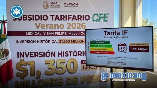 MEXICALI, B.C. – Como una medida vital ante las extremas temperaturas que caracterizan a la región, la gobernadora de Baja California, Marina del Pilar Ávila Olmeda, confirmó la implementación del subsidio a la tarifa de energía eléctrica para los municipios de Mexicali y San Felipe durante el periodo de verano 2026.