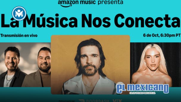 Como parte de la celebración de la música latina “La música nos conecta”, Amazon Music presentará una transmisión en vivo histórica a nivel global desde el popular local Academy LA el 6 de octubre. El evento se transmitirá en vivo y de forma gratuita en todo el mundo en Prime Video, el canal Amazon Music EN VIVO en Twitch (twitch.tv/AmazonMusicEnVivo) y dispositivos habilitados con Alexa a partir de las 7:30 p.m. México.