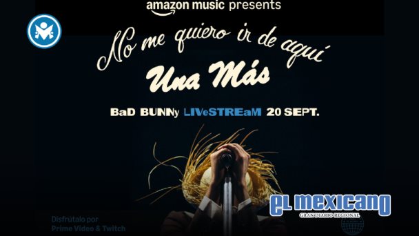 "No me quiero ir de aquí: Una más" se transmitirá exclusivamente y gratis en la Amazon Music app, Prime Video y el canal de Amazon Music en Twitch (twitch.tv/amazonmusic) el sábado 20 de septiembre a las 6:30 p.m. Sigue @AmazonMusicLatin para que veas todos las novedades de la transmisión en vivo y que seas parte de la conversación global usando #BadBunnyUnaMas mientras llevamos la magia de Puerto Rico desde la casa de Benito a la tuya.