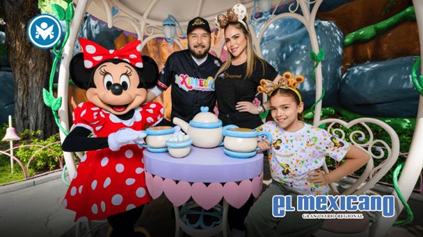 Poncho junto a su esposa Celia y su hija Ximena, se tomaron la foto con Minnie Mouse en Mickey´s Toontown, recreando la tierna foto que se tomaron cuando Ximena tenía un año.