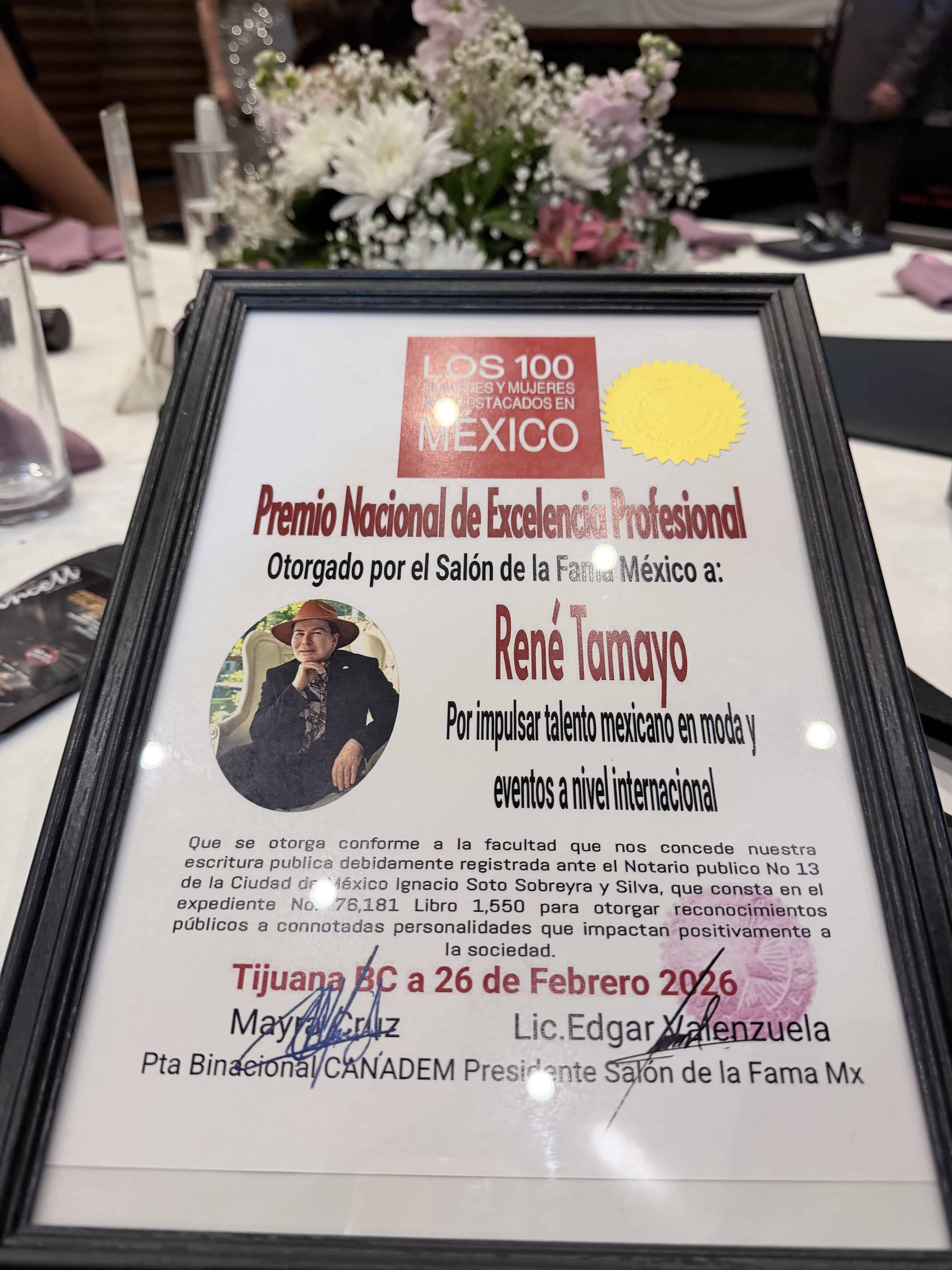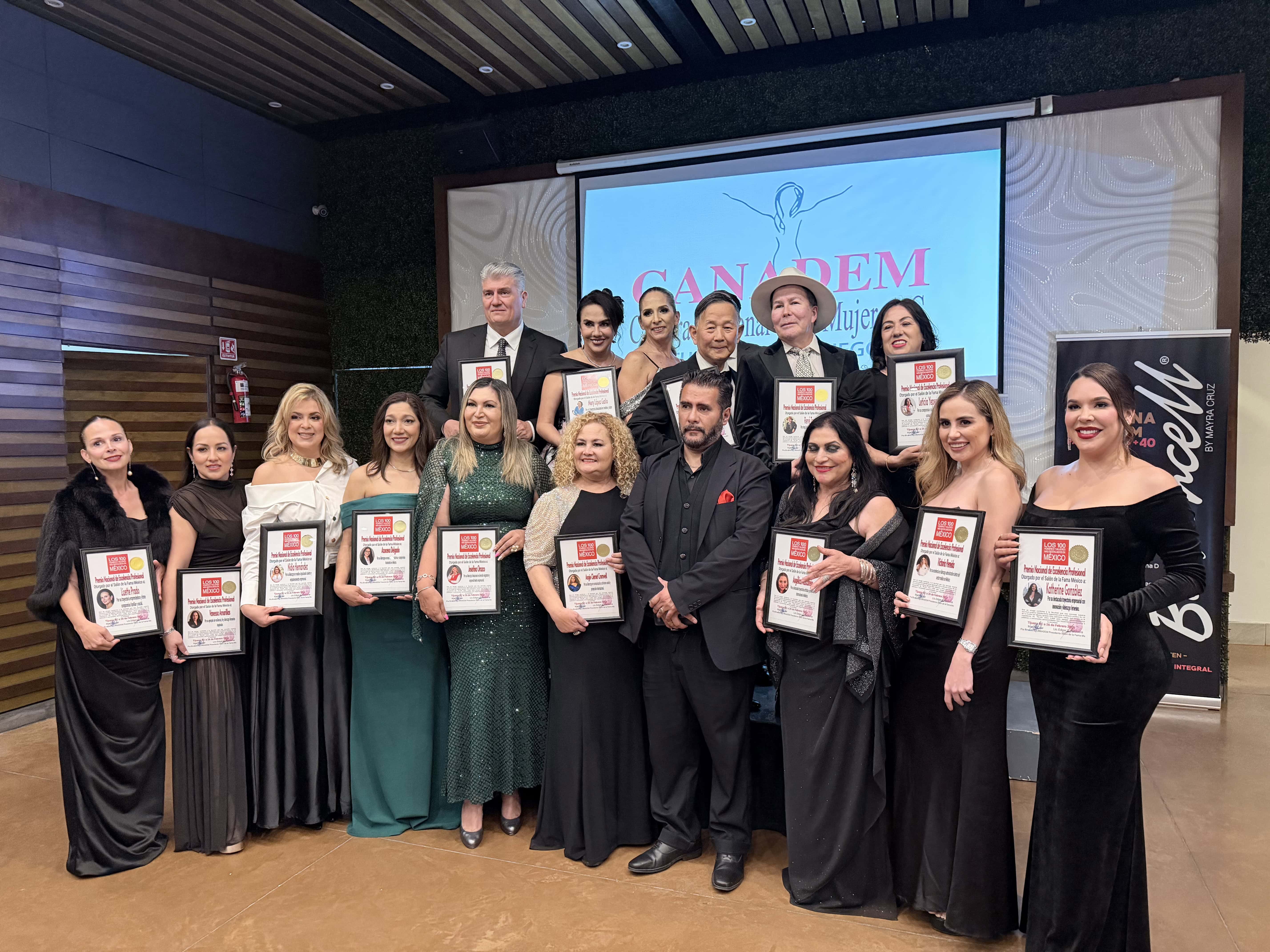 Tijuana, B.C. - Recientemente se llevó a cabo la entrega de los Premios a la Excelencia Profesional a nivel nacional, avalados por la presidenta binacional de Canadem, Mayra Cruz, y por el lic. Edgar Valenzuela, director del Salón de la Fama México. En el evento se reconoció a varios empresarios considerados entre los 100 hombres y mujeres más destacados de México en diferentes rubros: filantropía, éxito empresarial, medicina, periodismo y, en este caso, moda.
