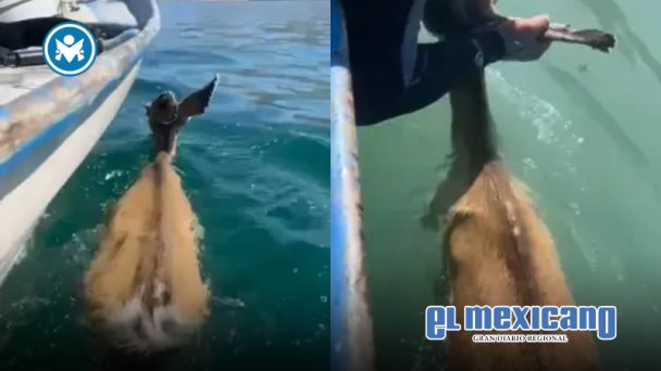 El animal nadaba cerca de la isla San Pedro Mártir, y tras ser llevado a tierra firme, recuperó fuerzas mientras el video del rescate se vuelve viral en redes.