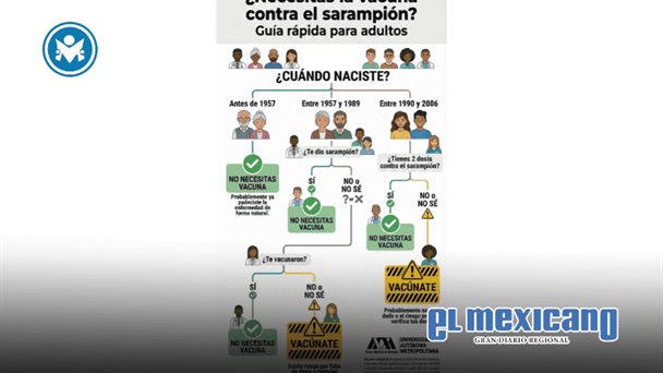 Tijuana, 13 de Febrero. - Un nuevo esquema orientativo facilita a los adultos determinar si necesitan la vacuna contra el sarampión, tomando en cuenta su año de nacimiento y antecedentes médicos básicos.