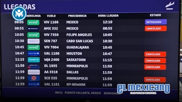 Tijuana, 23 de Febrero. - Por segundo día consecutivo, aerolíneas internacionales cancelaron vuelos hacia y desde Puerto Vallarta tras los hechos de violencia registrados en Jalisco luego de la muerte de Nemesio Oseguera Cervantes, alias "El Mencho", en un operativo de la Secretaría de la Defensa Nacional (Sedena).