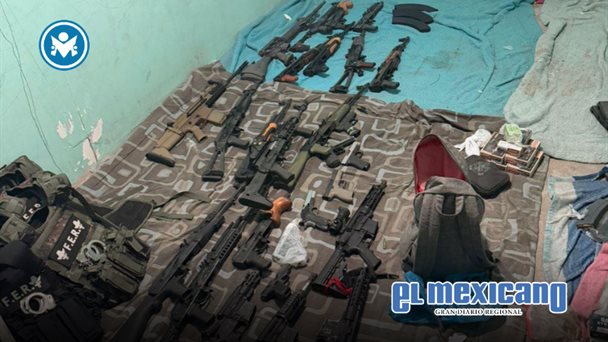 Durante el cateo se aseguraron 34 armas de fuego, de las cuales 26 eran largas y 8 cortas, así como 55 cargadores y cerca de 10.000 cartuchos útiles. Además, se incautaron chalecos balísticos, diverso equipo táctico, bolsas con droga y vapeadores.