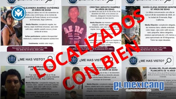 Tijuana, 24 de Diciembre. - Seis personas que contaban con reportes de desaparición en los municipios de Ensenada y San Quintín, en el estado de Baja California, fueron localizadas con vida y en buen estado de salud, informaron este martes autoridades estatales.